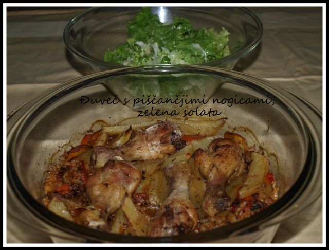 v ponedeljek mesno zelenjavna rizota, solata in danes pecena piscancja bedra z mladim krompirjem