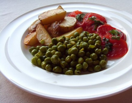 Danes: dušen maladi stročji fižol z mesom (fižol iz vrta), mladi krompir, mešana solata