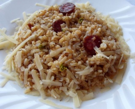 Od včeraj je ostalo nekaj kuhanega riža, z dodatkom domače slavonske klobase in začimb (laški smilj obilno cveti, a so cvetovi fajn grenki