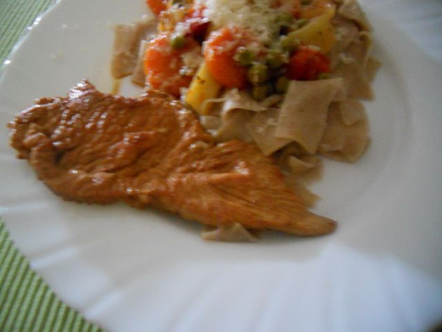 mzmDanes: svinjski zrezki, polnozrnate testenine z zelenjavno omako, mešana solata