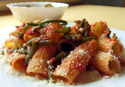 : pašta s pski (cuckoti, bi ena rekla) pripotovali po pošti, pečene in okisane bučke, nabrane na "šenk"