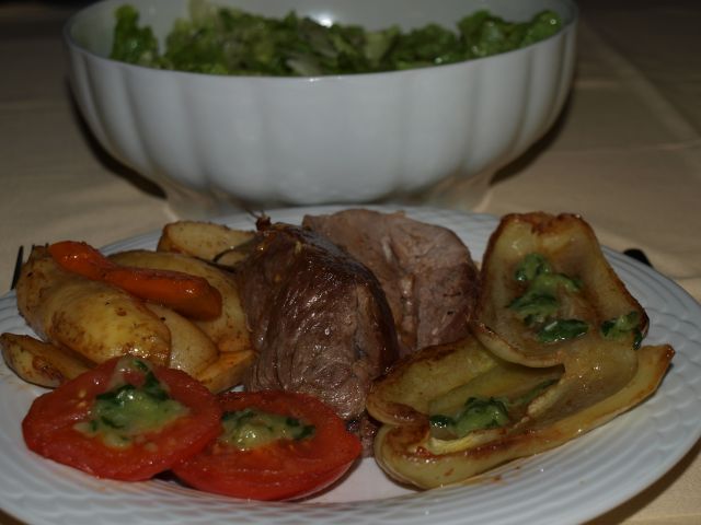 Danes: mešano na žaru, pečen mlad krompr, paradižnik, paprika, mlada čebula,
