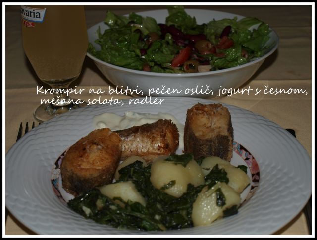 Včeraj pečen mlad krompir in skleda domače solate,