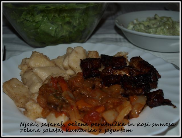 njami bučke s sirom, paradižnik in kumare v solati, ![]()
