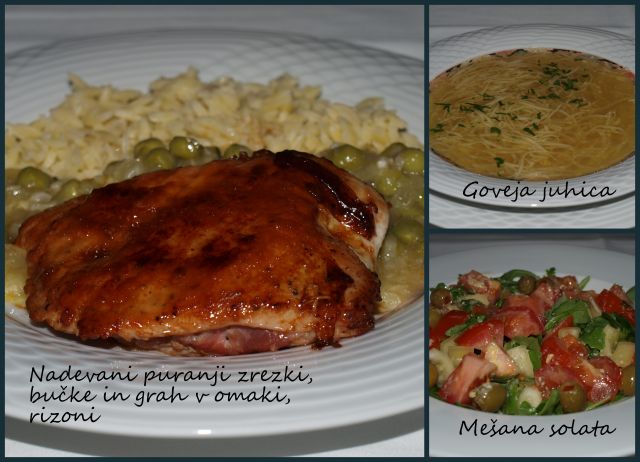 Včeraj: gobova juha, špageti s paradižnikovo omako in zelena solata.