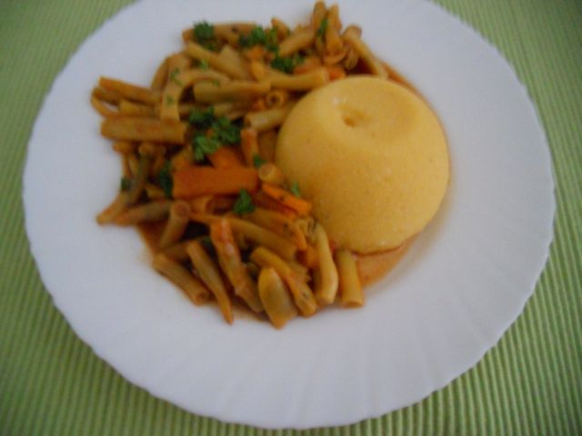 Danes: stročji fižol s korenčkom v omaki, polenta, mešana solata