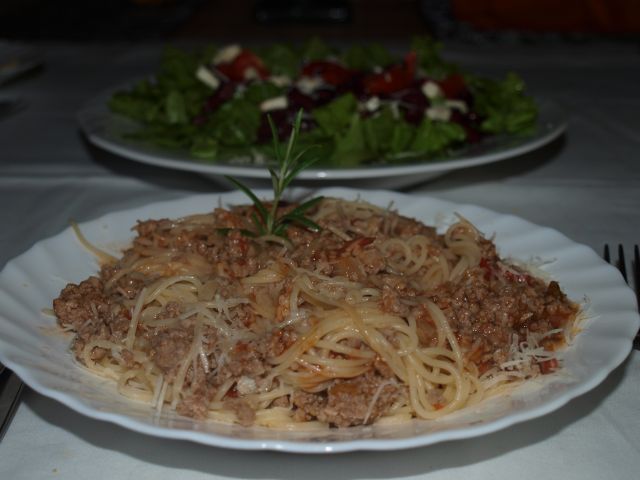 Pri nas včeraj golaž, široki rezanci, zelena solata