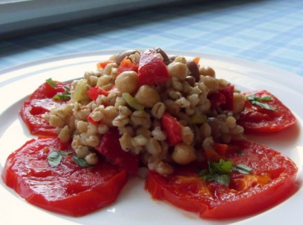 ) in je bila danes ješprenjeva solata in popečen paradižnik (ješprenj, čičerka, fižol, paprika, kumara, limonina lupinica, sok limone in začimbe)