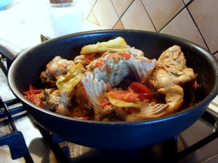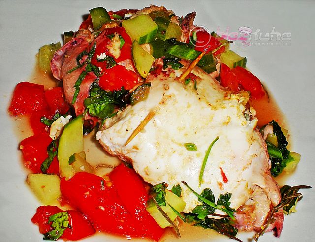 Danes: boranja iz domačega vrtička, češnjevci in paprike v solati ![]()