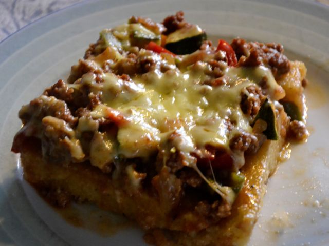 Kremna juha iz bučk, pa polenta z mesno zelenjavno omako, gratinirana ...