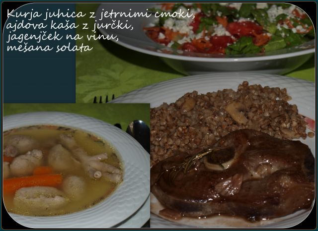 Danes nisem kuhala, zame solata iz vsega mešanega zelenjavnega in kos piščančka, ki sem ga pekla za sina. Hči se je nekje zgubila s prijateljicami, mož jadra- danes ímajo moj pasulj, sin pa je bil na crkljanju- piščanček, pečen krompir, rdeča pesa, palačinke...