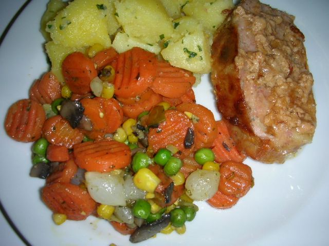 Danes: štefani pečenka z mocarelo, zelenjava na maslu, krompir in vsakodnevna trgatev