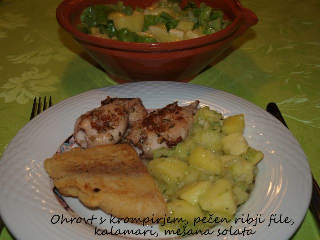 jutri panirani fileji osliča (pečeni v pečici) in krompirjeva solata