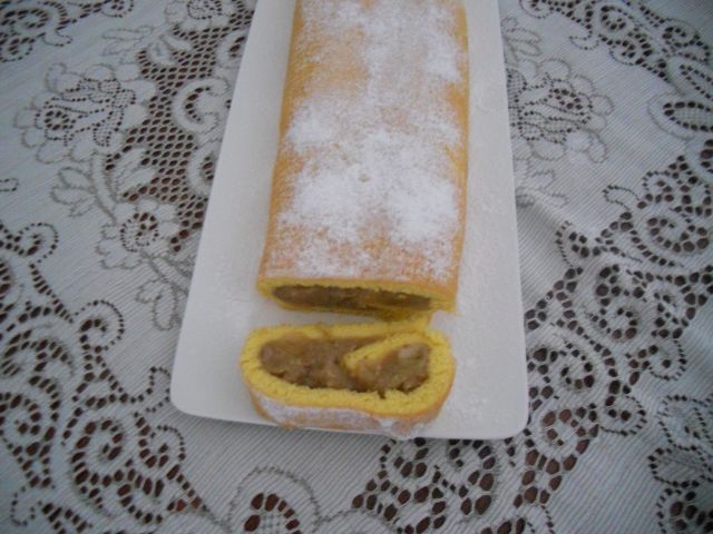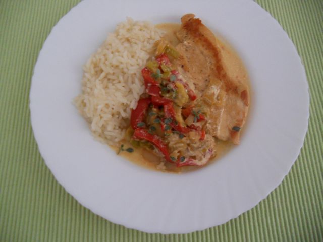 Danes: puranji zrezki s porom in paprika, riž, zelena solata, rolada z jabolki