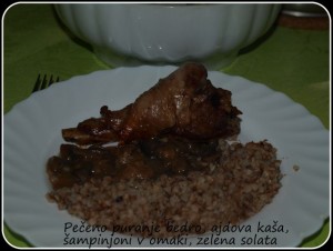 Mi smo danes jedli prleške jedi, dodole in svinjske zrezke s česnom in rdečo pariko. Pa razne solate zraven, seveda, kozarček rdečega ...