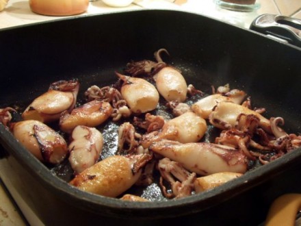 Danes polnjeni kalamari, polenta in radic. Kuha se bucna marmelada