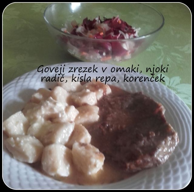 Ponedeljek: Goveji zrezki v zelenjavni omaki, ješprenj s zelenjavo za prilogo in solato