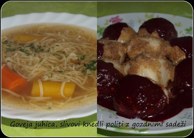 Danes: Čista juha iz bio zelenjavne kocke s korenčkom in domačimi rezanci, slivovi cmoki iz paljenega testa, kakijeva čežana.