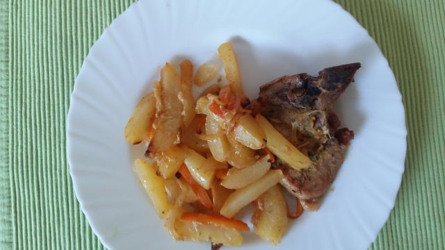 ursiiiDanes: svinjske zarebrnice z zelenjavo v pečici, zelena solata