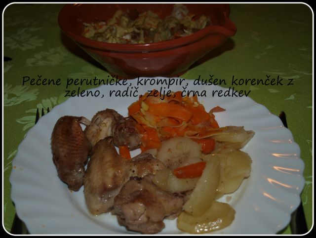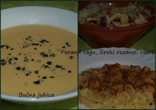Sreda: Precej gosta zelenjavna juha, makarončki z omako iz pečene paprike in nekoliko druge zelenjave, motovilec s fižolom.