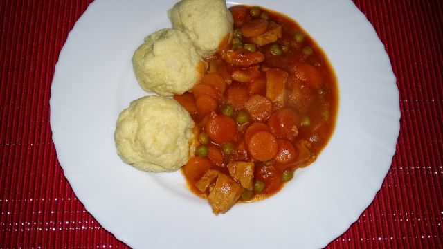 Kjer je volja, tam je pot. TrixiDanes: svinjina z zelenjavo v omaki, zdobovi cmoki, mešana solata