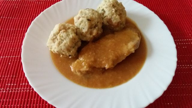 Danes: svinjski zrezki v gorčični omak, kruhovi cmoki, mešana solata