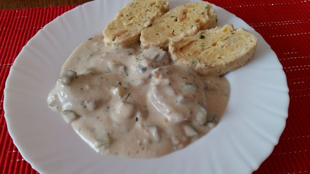 Danes: kruhov skutn štruklj, svinjski medaljoni v smetanovi omaki, mešana solata