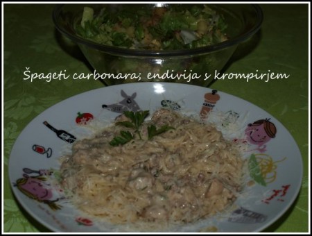Za kosilo bo danes goveje- kokošja juha z rezanci, piščančji trakci v smetanovi omaki s sirom, za moža golaž iz zaloge, široki rezanci in mešana solata.