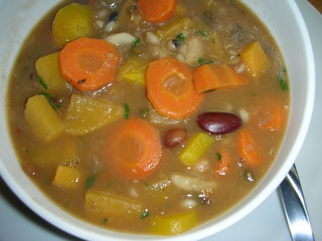 danes bo goveja juha, pražen krompir, pečenica, valika skleda mešanega radiča in motovilca,