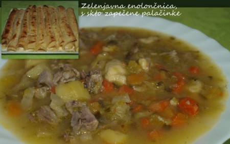 Goveja juha z rezanci, špinača, pire krompir, mešana solata, hrenovke, zame pa namesto hrenovk pečeni sardoni.