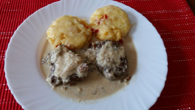 spodbeDanes: pljučna pečenka v gobovi omaki, zelenjavna polenta, mešana solata, piškoti z brusnicami in čokolado