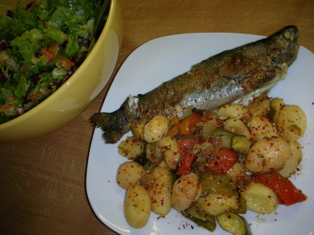 Vsesladkosneda (slastnakuhinja.blogspot.si)Danes: pečena postrv, krompir, zelenjava in mešana solata, za enega...