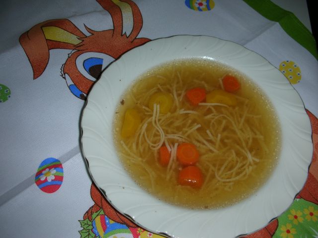 Danes bo se sunka, jajca in hren. Potem pa goveja juha z rezanci, puranji madzarski ragu, riz, mehka solata z zeljem, potica![]()