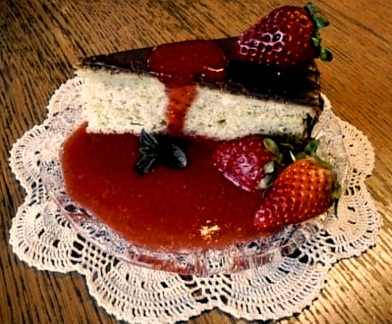 , polnjeno z domačo marmelado oziroma džemom iz zelenih cuket s čokoladno glazuro, kose tortice sem pred serviranjem bogato prelila s pretlačenimi svežimi jagodami. Običajno k receptu vsakič napišem mnenje oziroma poročilo o uspehu