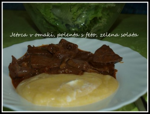 Včeraj zapečena polenta s čemažem, šunko, sirom, grahom..., zelena solata z vrta