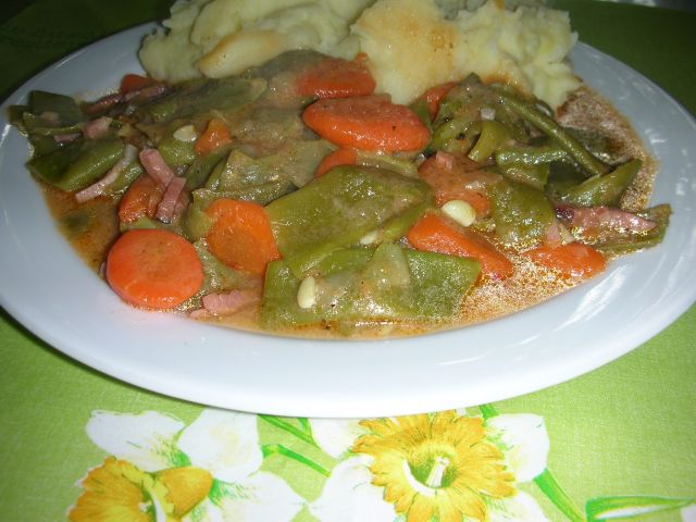 Lottizelenjavna enolončnica (tudi malce mesa), slivovi cmoki s slivovo polivko