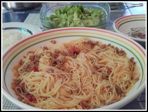 Špageti bologneze, zelena solata: