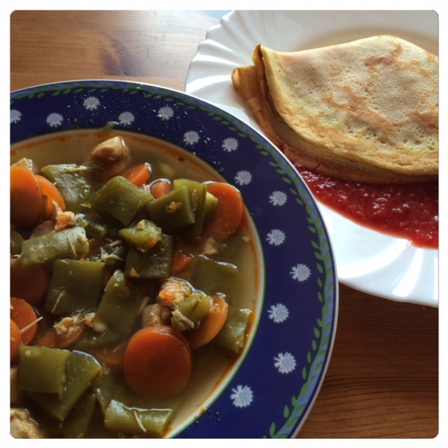 zelenjavna juha iz stročjega fižola in korenčka, s piščančjim mesom