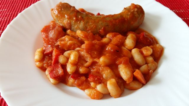 Včeraj: klobase v omaki s fižolom, dušena jabolka z odišavljeno smetano