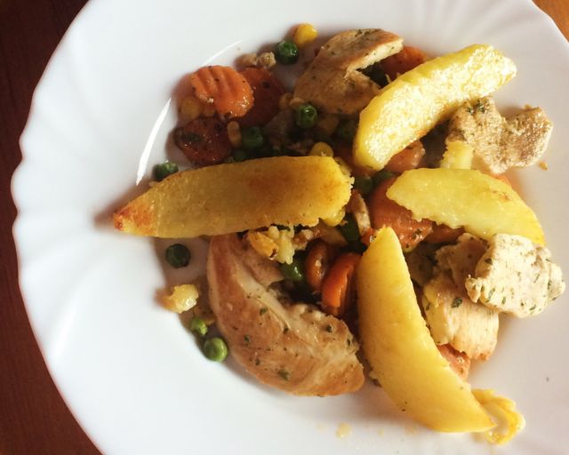 Danes: ocvrti piščančji prsi, rizi bizi, mešana solata