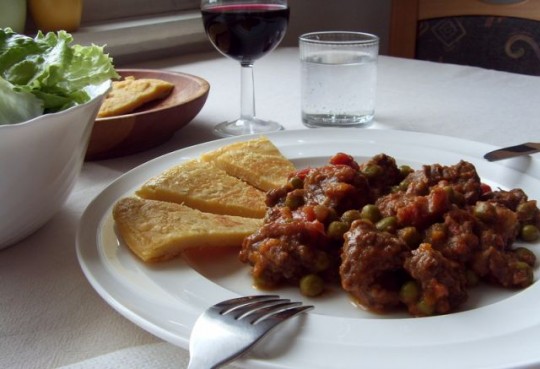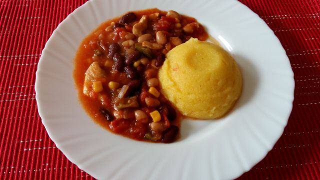 Danes: chilli con carne, polenta, solata
