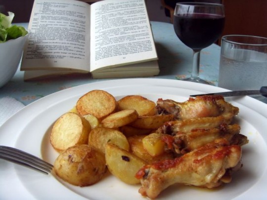 Vsesladkosneda (slastnakuhinja.blogspot.si)Danes: kraljevski krompir, svinjska vratovina, zelena solata s korenjem, navadna čokoladna tortica in voda![]()