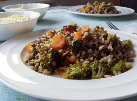 Včeraj mi je ostal ješprenj, danes sem dodala še lečo in zelenjavo