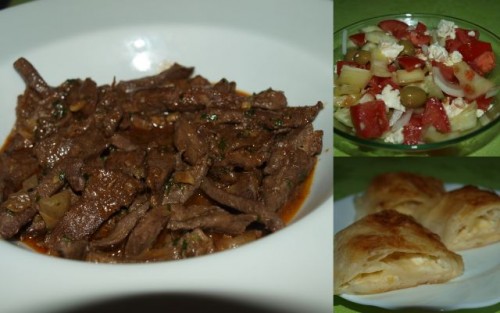 Pražena jetrca, šobska solata, skutni zavitek