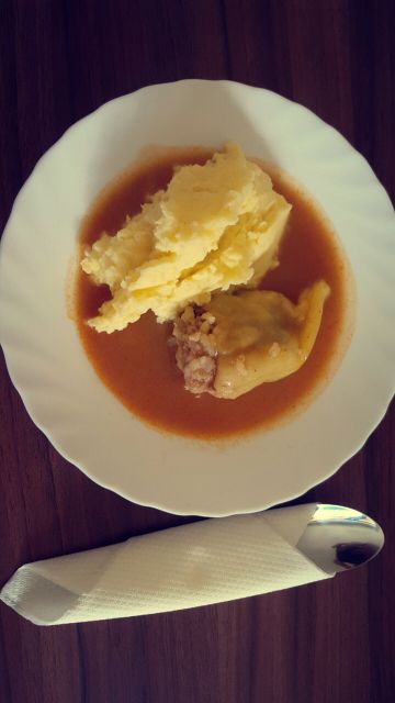 Danes polnjene paprike ( domače), pire krompir, zelena solata, moja sladkosneda bajadere