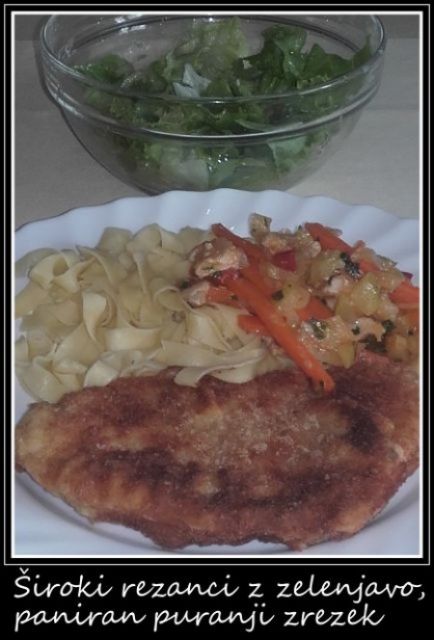 Danes: Krompirjevo-gobov golaž, široki rezanci z drobtinami, endivija v solati, štrudelj, gosti sok iz jabolk in breskev. Eno samo škrencljanje in pucanje zelenjave, pa na koncu zelo užitno (in pospravljalno).