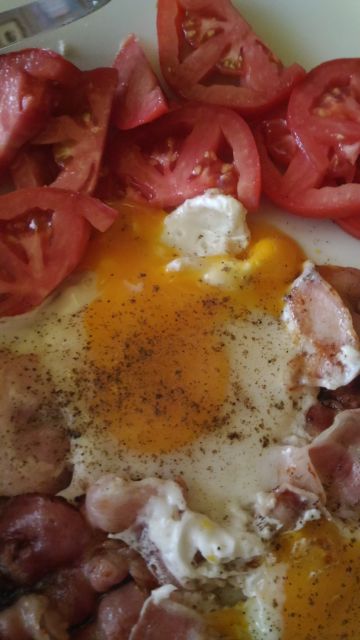 Čebulka, ja ravno sem jajčka dala gor, slikala, potem pa vse premešala, spekla do konca in hop v želodček