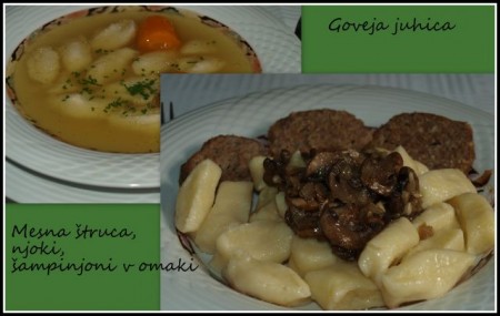 Danes govej juha z zdrobovimi zlicniki, pecen file lososa na zaru, krompirjeva solata In zelena solata. za sladkat pa domaci cantuciji.