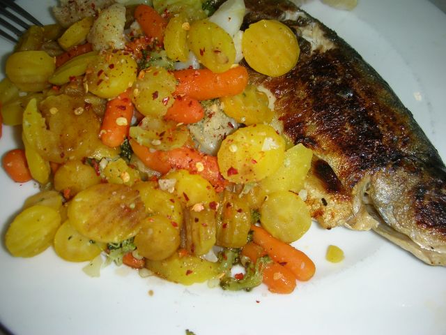Danes sem se nagarala v vrtu in bo bolj enostavno kosilo-popečeni kosi purana in svinjine s sirom, pražen krompir, zeljna solata.