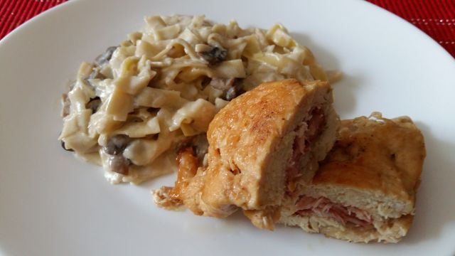Danes: piščančja rulada, domači rezanci z gobovo omako, solata